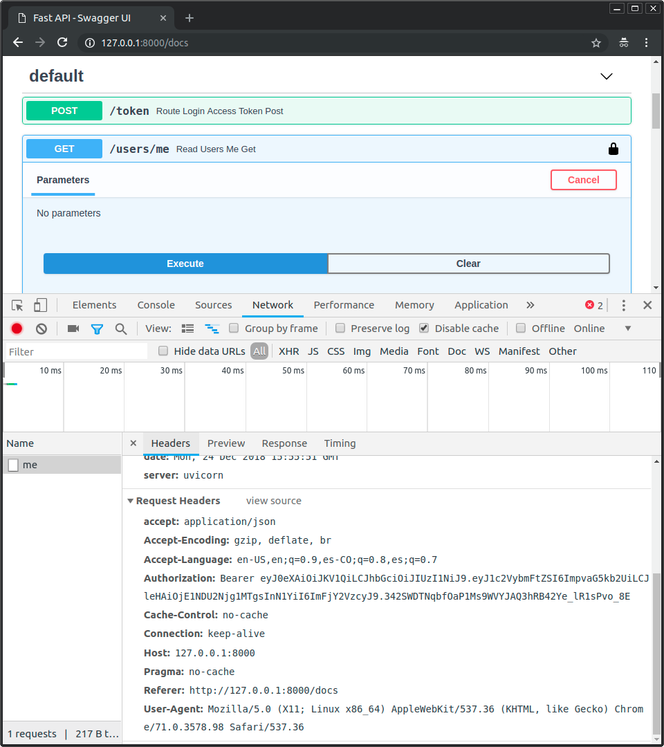 Notice the header Authorization, with a value that starts with Bearer.